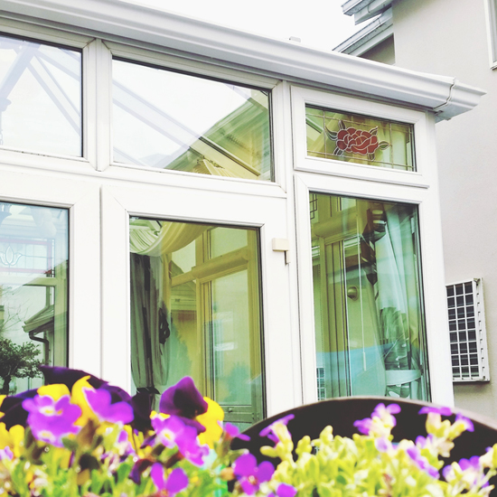 コンサバトリーを背景に記念撮影!お花畑感が出ているでしょうか?