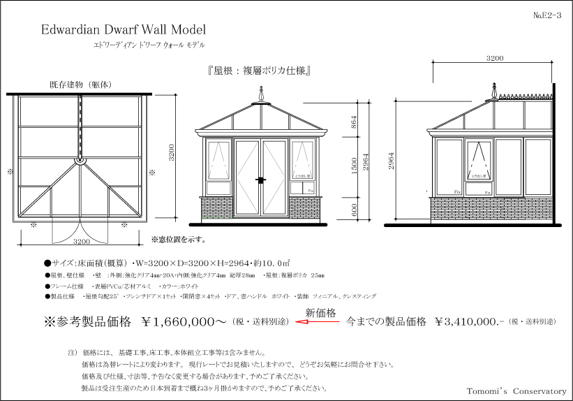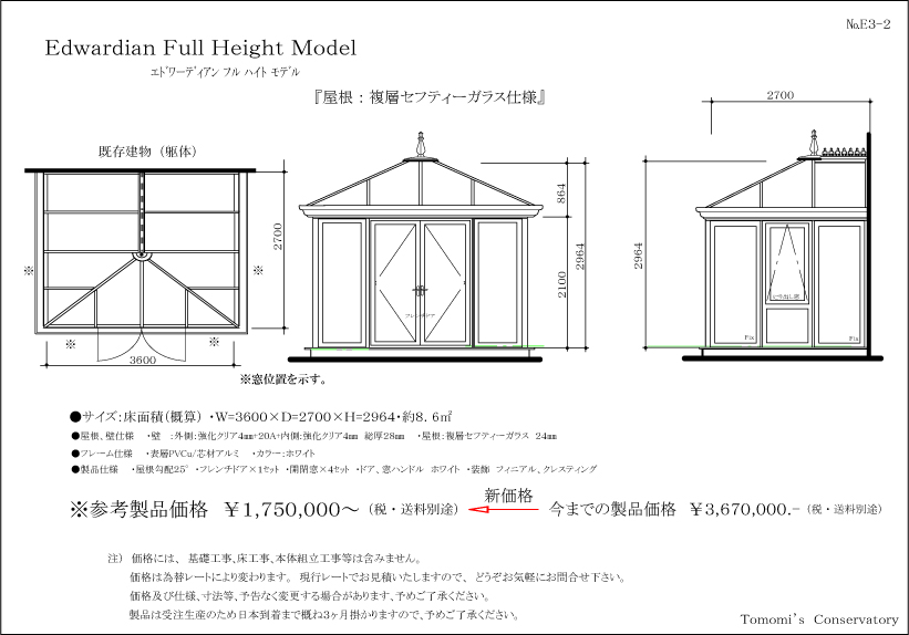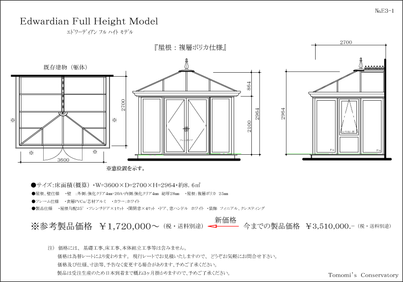 参考製品価格・コンサバトリー製品内容