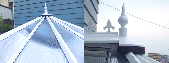コンサバトリーを象徴するような頂点装飾を、「フィニアル」
