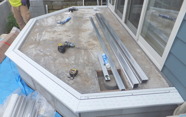 前回は基礎工事が完了しましたので、いよいよコンサバトリー本体の工事へと