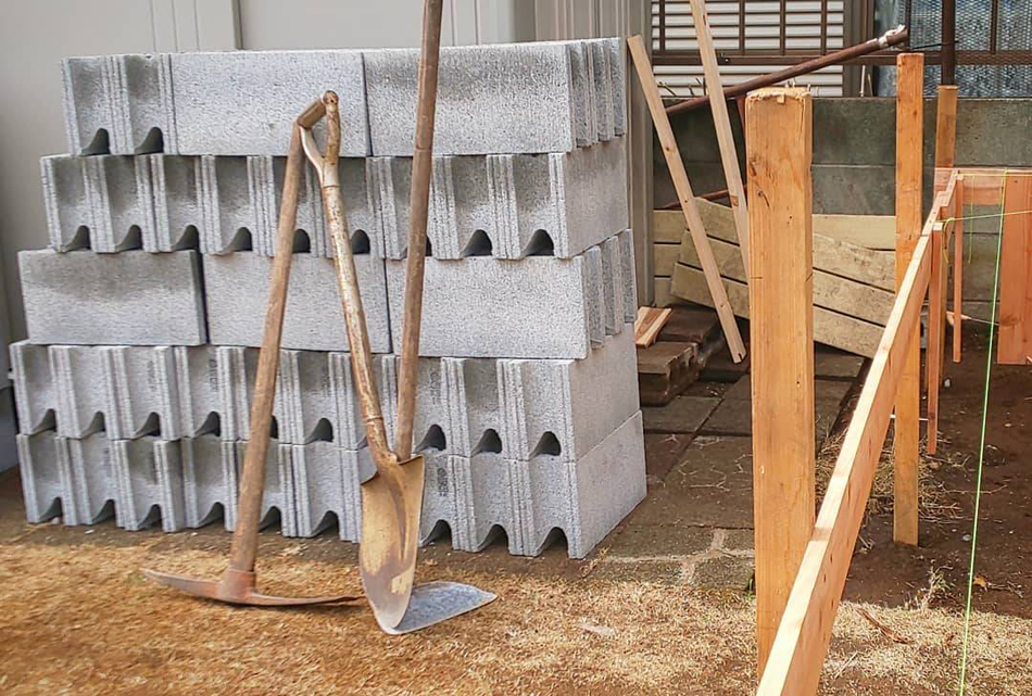基礎は重量ブロックを積んで造っていきます☆