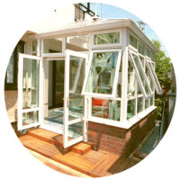 横開きのすべり出し窓はとってもおしゃれ! 1つ1つ開けられるので風の通り道が出来やすく、快適なお部屋を創るのに役立ちます! このすべり出し窓は気密を確保しやすく、通常のサンルームと違い コンサバトリーが”お部屋”として機 …