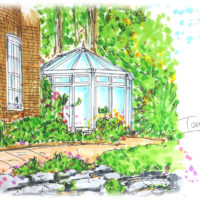 ご無沙汰ですがコンサバトリーのイメージイラストを描きました(*’ω’*)♪ イメージは木々と花に囲まれたイングリッシュガーデン風のお庭とレンガ造りのお家です! アプローチのその先、グラウンドカバー …