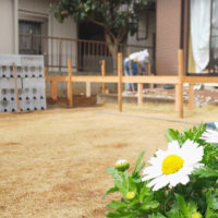 前回に続きまして基礎工事を進めてまいります♪ コンサバトリーの基礎ブロックは積めましたので 今度はお庭と室内を繋ぐステップ(階段)を作ります! 今回は少し横に広めの2段にしました! 一部は使いやすさを考えまして、既存の犬 …