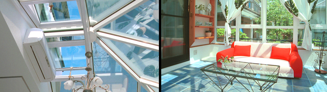また、コンサバトリーのガラスには紫外線をカットする効果や、熱線を吸収・反射する