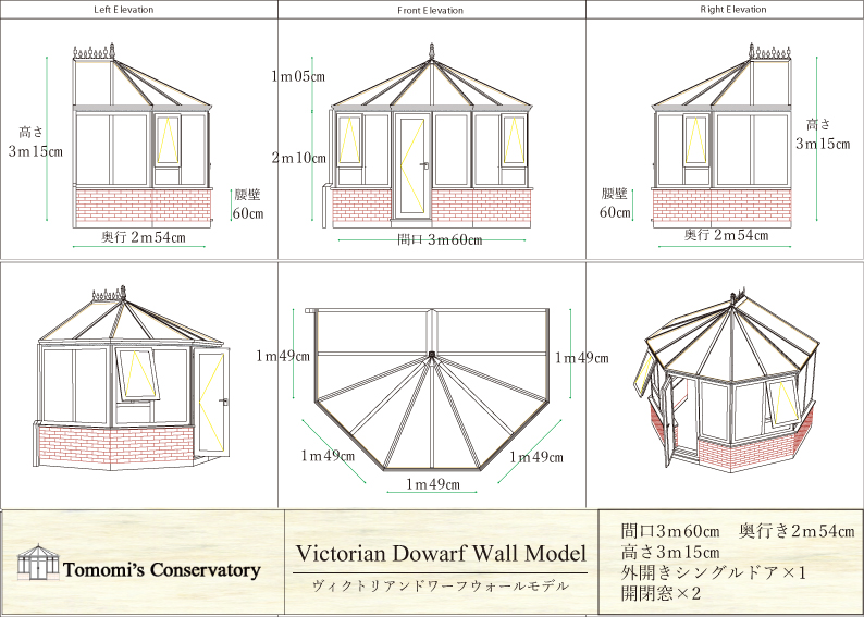 またコンサバトリーのサイズ・デザインはお好みでオーダーできるので可愛くコンパクトに、