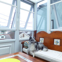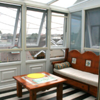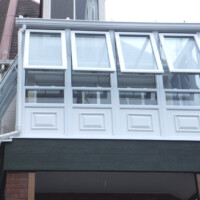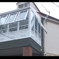 片流れの屋根が大きな特徴となっており、いわゆるサンルームとして日本でも定着している形です。