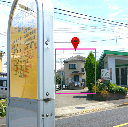 ※バス停下車後正面にある会社様を見ますと、1本先の道に当店が見えます。
