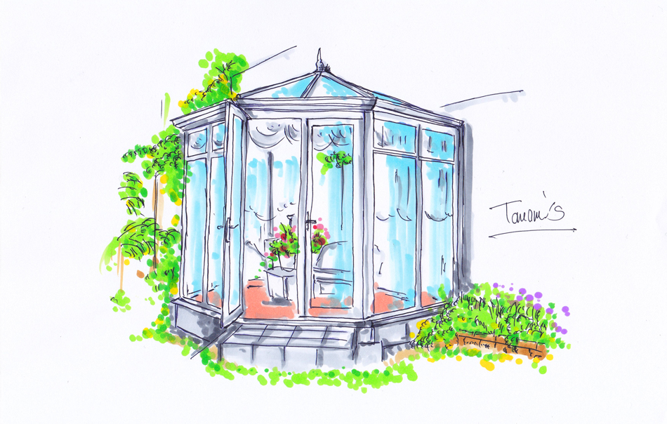 コンサバトリーの不思議なところは、実際の床面積よりも広く感じる点にあります!